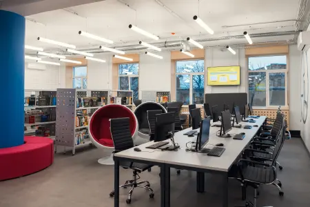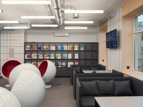 In the ITMO library, you can borrow books, work in a comfortable environment, hold an event, and even relax. Students have access to a sound-free zone with computers. The library offers services ITMO.SHARE and ITMO.PRINT aimed at making the learning process more comfortable.