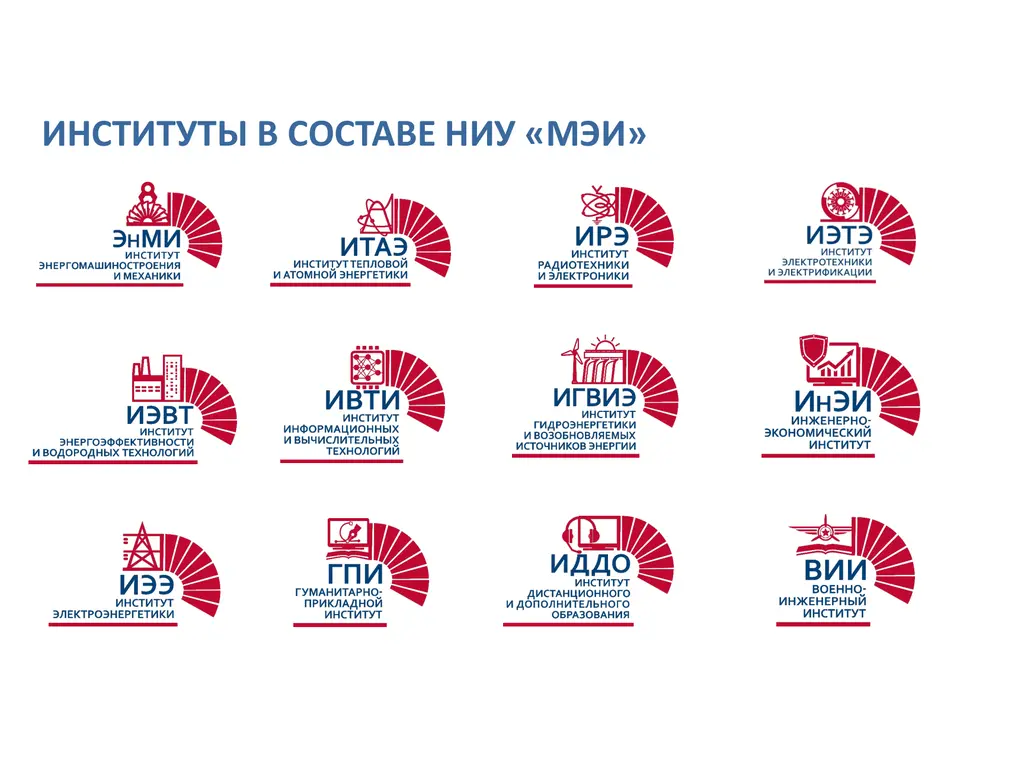 "МЭИ" институту 12 институтту камтыган кеңири материалдык-техникалык базага ээ. Окуу 25 даярдоо багыты боюнча ишке ашырылат. Бүтүрүүчүлөрдүн жумушка орношуу деңгээли 99% дан ашат. Биздин бүтүрүүчүлөр заманбап адамдын ишмердүүлүгүнүн дээрлик бардык чөйрөлөрүндө өзүн көрсөтүшөт.